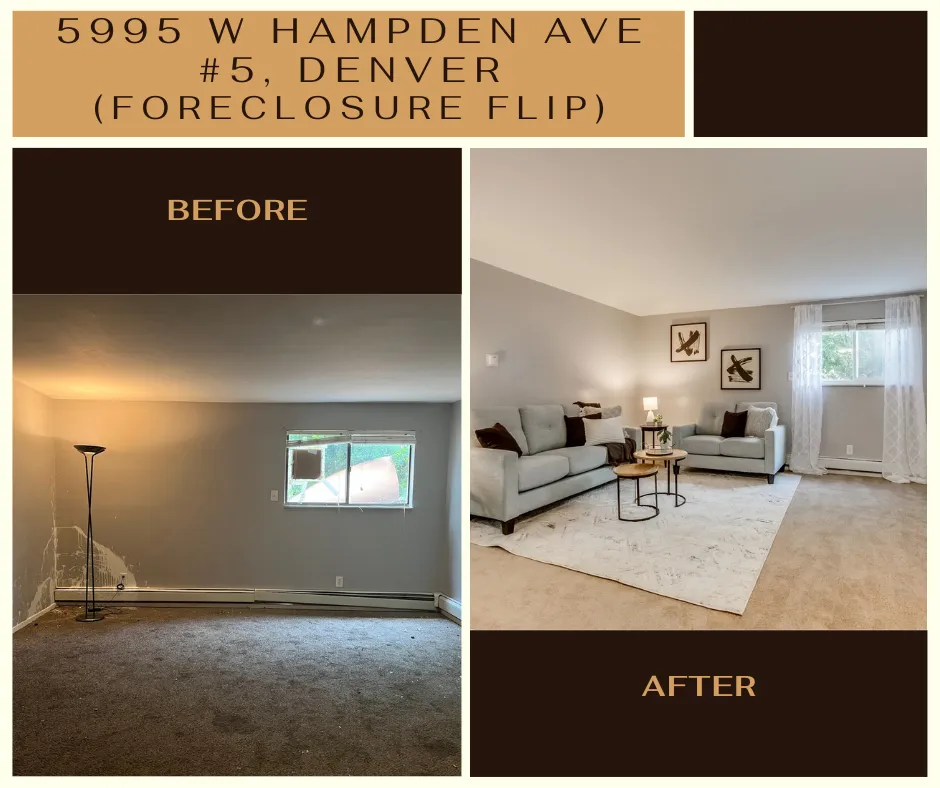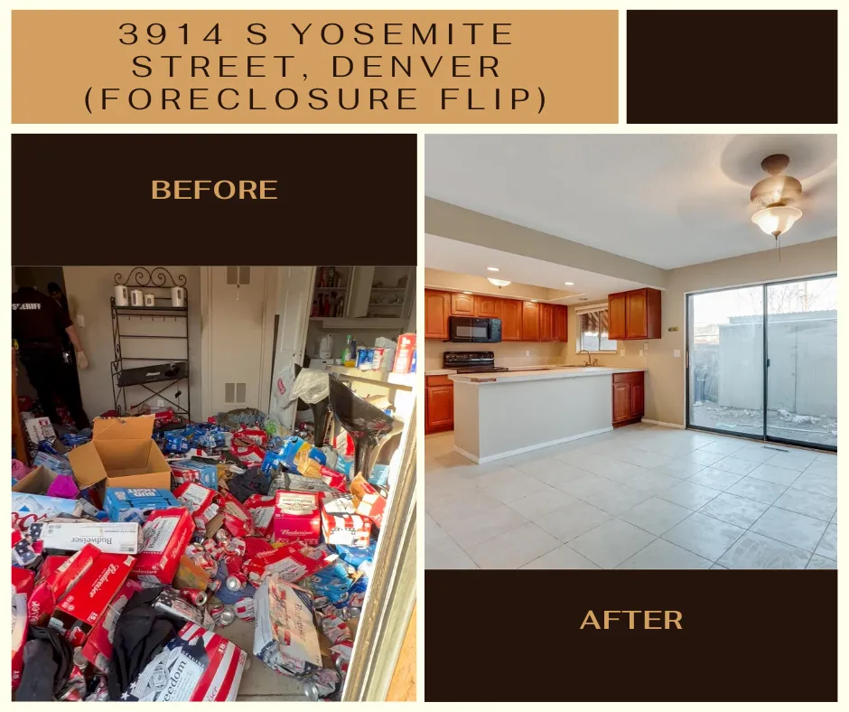 My client was drawn to this half-duplex for its prime location—just a short walk to Sloan’s Lake, one of Denver’s most sought-after areas. However, the property turned out to be a severe hoarding situation. Entry required assistance from the sheriff, and a crew of over 20 was brought in to clear out the extensive belongings. The amount of debris completely filled the front yard, and years of neglect and decomposition rendered the interior beyond repair. We ultimately sold the property in as-is condition to an investor, who gutted the home and transformed it into a beautifully renovated space. That investor later sold it for $930,000.