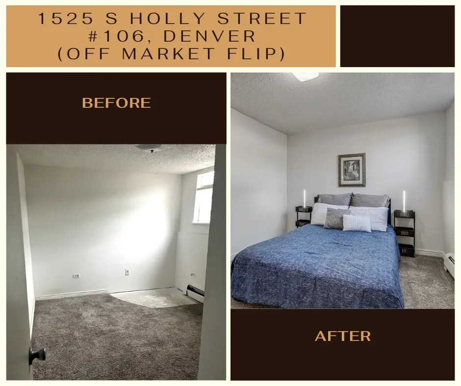 This turned out to be a fast and straightforward flip. We updated the flooring in two rooms, repainted the entire unit, steam-cleaned the carpets, and swapped out light fixtures to modernize the space. It hit the market and went under contract in just eight days, ultimately giving a buyer the opportunity to live in Denver Proper for under $200,000.